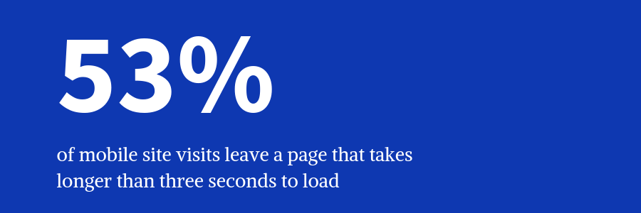 The ideal page load time is three seconds or less, according to Google. That’s because mobile users abandon 53% of searches that take longer than that amount of time to load.