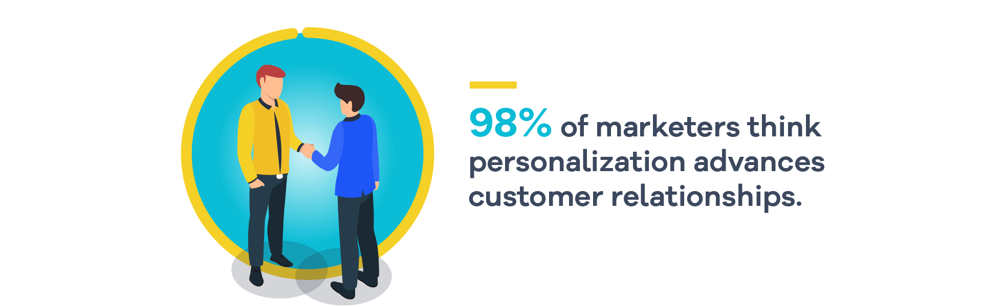 According to the 2019 Trends in Personalization Survey Report, marketers overwhelmingly agree (98%) that personalization helps advance customer relationships, with 70% claiming it has a “strong” or “extremely strong” impact. The majority of marketers (85%) also think their prospects or customers expect a personalized experience.