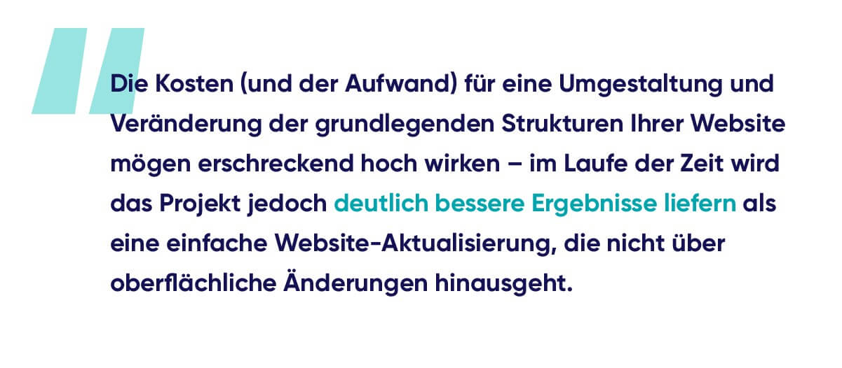 Wie bei jeder größeren geschäftlichen Investition müssen Sie die Notwendigkeit eines Relaunchs abwägen und auf Grundlage der erwarteten Ergebnisse entscheiden, ob sich der Aufwand lohnt.