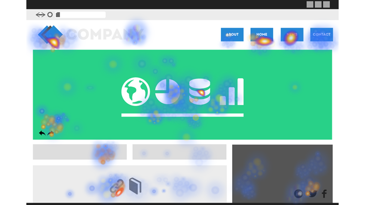 Heatmaps are a highly visual way to represent data points. They rely on a color code to highlight hotspots of user activity. Typically, these colors will range from blue (low user activity) to red (high user activity).