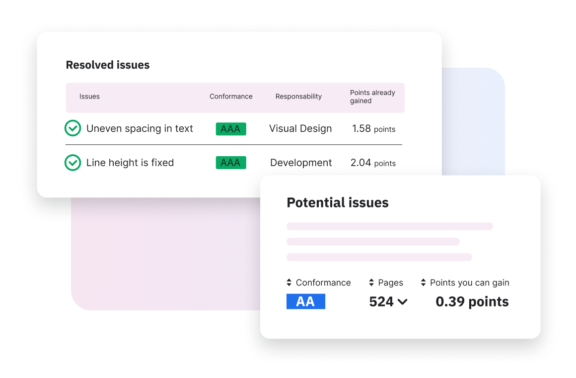 Go beyond just finding errors by getting a prioritized list of fixes, sorted by WCAG standard and severity, so your team can focus their efforts on what matters most.