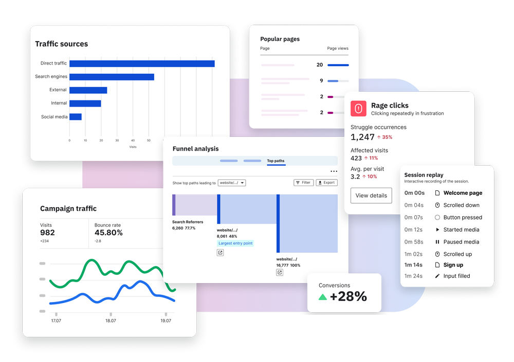 See how users interact with page layouts and navigation. Spot frustration signals quickly, validate design decisions, and reduce usability issues that block conversions.
