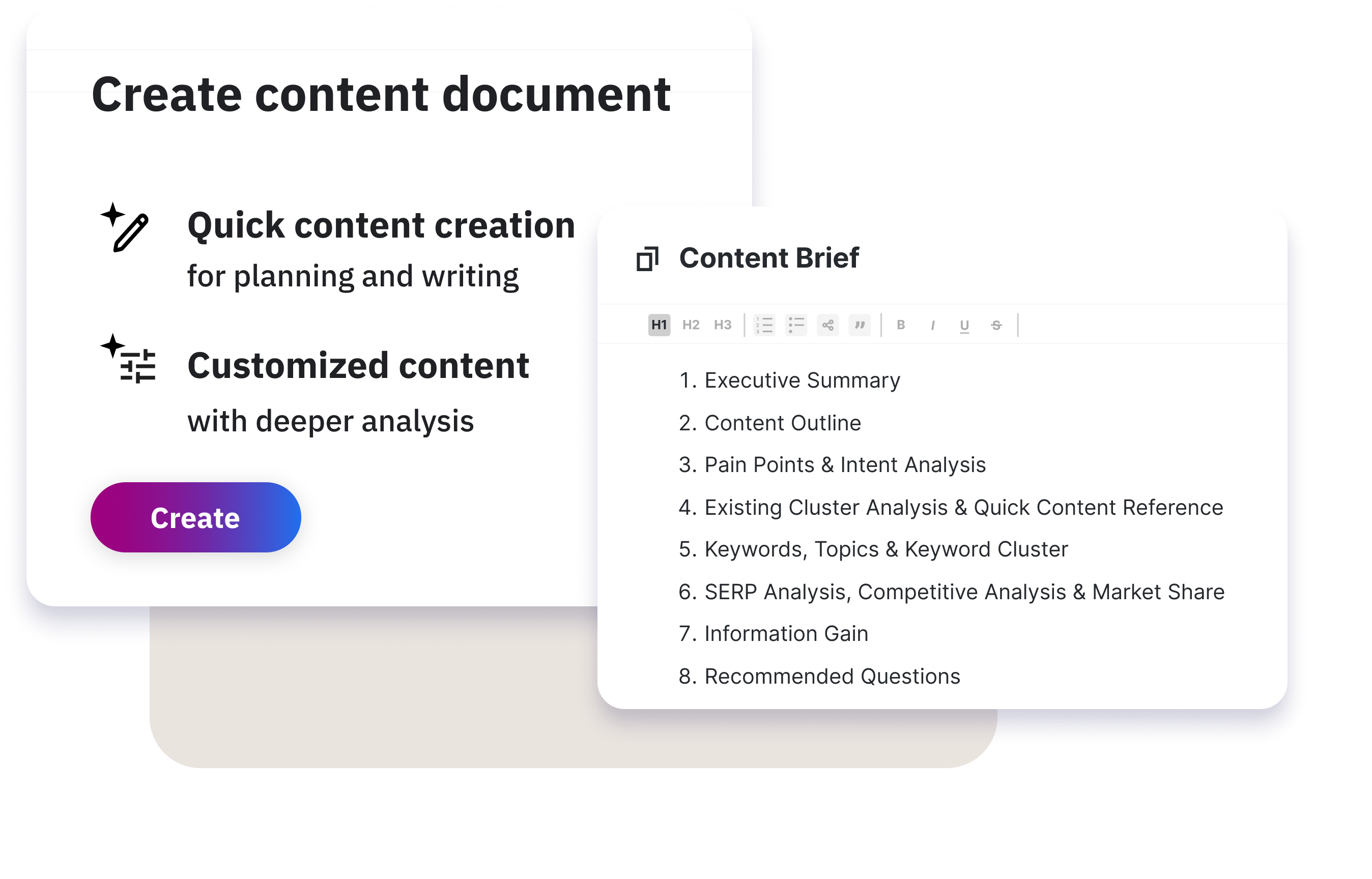 Marketers can now manage everything (content research, planning, brief creation, optimization, and measurement) in one unified environment. No toggling between tools, no stitching insights together.